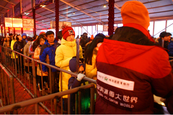 长达320米的冰滑梯上,江苏小伙儿陈建峰一路高喊着飞驰而下,“来冰雪大世界肯定得先玩玩这个冰滑梯,虽然玩的人不少,排队时候挺冷的,不过能玩到这么长的冰滑梯,冻多久都值了!”