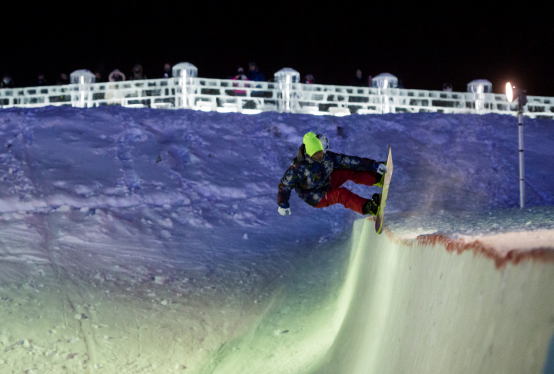 旋转、腾空、跳跃……专业选手在U型槽内演绎着精彩的雪上冲浪,不时做出一个个令人瞠目结舌的惊险动作。为庆祝成功申办冬奥会,哈尔滨冰雪大世界今年首次引入了U型槽滑雪表演项目,6名专业选手每日在景区内进行U型槽表演,精彩刺激的演出也吸引了诸多游客的目光。