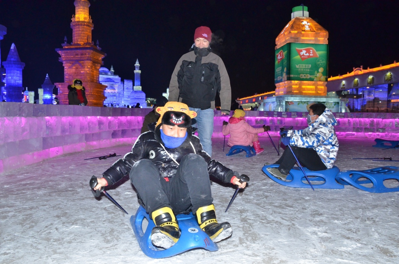 欣赏完美丽的冰雕后,孩子们又来到了景区的冰雪娱乐区域,打冰爬犁、坐冰滑梯,孩子们抛去了最开始的拘谨,脸上露出了天真的笑容,孩子们发自内心地笑着、闹着,享受着冰雪给他们带来的快乐。