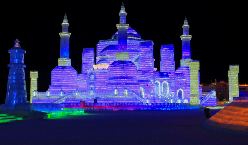 今天,哈尔滨冰雪大世界的能工巧匠们用智慧与汗水,完美地将这座举世闻名的大教堂复现在景区之内。当您和朋友们来到哈尔滨冰雪大世界,沉醉于光影梦幻中时,不妨给他们讲讲“热舞撒哈拉”背后的故事,然后就等着看朋友们目瞪口呆的崇拜表情吧!