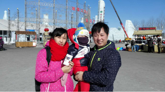 在镜头下绽放着甜美的笑容的正是李龙与谷玉玲和他们满一岁半的宝宝,我想这也是冰雪大世界最小的游客了吧!李龙告诉小编,他可是冰雪大世界官微的铁杆粉丝,没想到此次活动就被抽中了,觉得自己很幸运。李龙说,以前每年情人节的内容都很单调,无非就是吃吃饭逛逛街,“今年冰雪大世界举行的这个活动,给我们的情人节送上了一份特别的礼物。”
