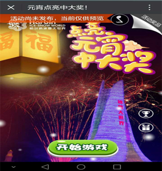 1、关注哈尔滨冰雪大世界官微后回复“元宵节点灯抽大奖”字样,您就会进入链接的“点亮花灯”小游戏。