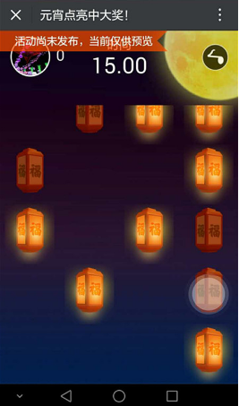 2、点击开始游戏,屏幕上会出现很多花灯,点击白色闪烁花灯,准确点击一次获得一分,在15秒内点亮花灯越多越好。