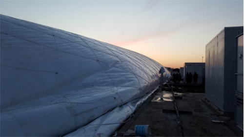 气膜逐渐吹起,东三省首次应用气膜材料做建筑场馆。