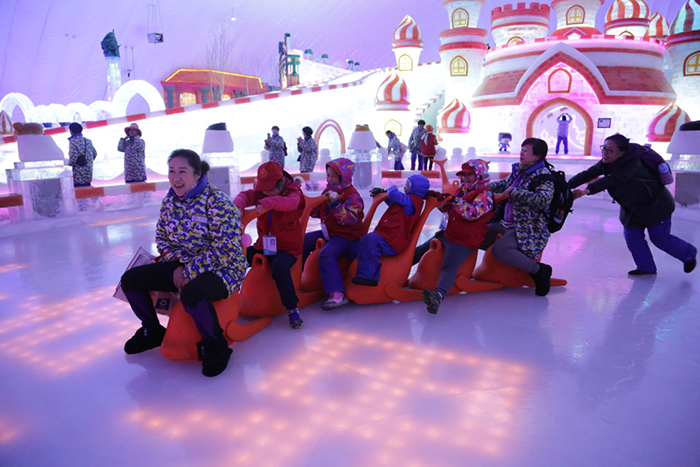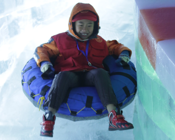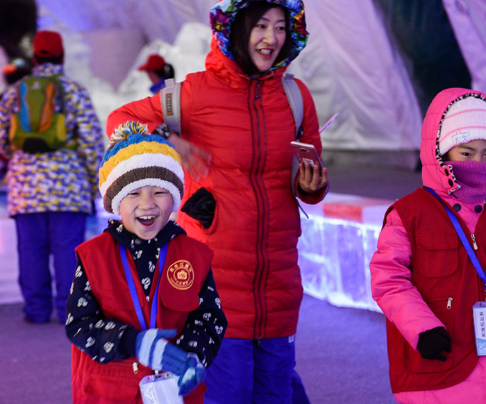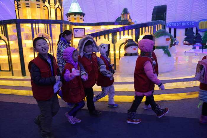 园区内的彩色索菲亚教堂、严格按比例还原的中央大街经典建筑、橱窗中的卡通人物、艺术化的防洪纪念塔……一座座冰雕无疑让小记者们目瞪口呆,感受迷你的哈尔滨魅力。不过最吸引小记者眼球的还是室内冰城堡。在全球最大的室内冰城堡,站在最上面,整个冰雪王国的魅力尽收眼底。雪圈、冰滑梯、冰上碰碰车等冰上娱乐项目让小记者们在零下18℃的冰天雪地里玩得直冒热汗。不少家长也大发童心,跟着孩子从冰滑梯上滑下来,感受反季节冰上游戏的乐趣。活动结束后,有三名小记者意犹未尽,呜呜大哭,不想离开,一边哭一边说下次还要来。