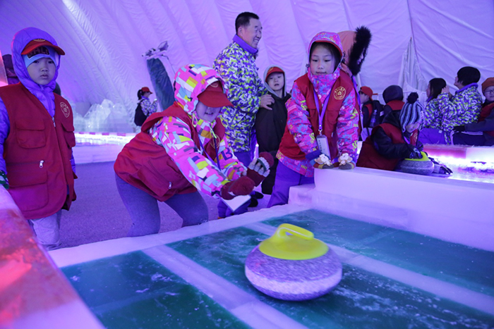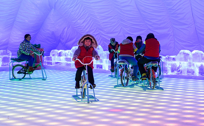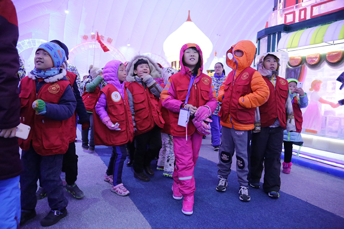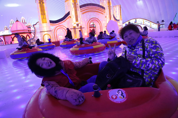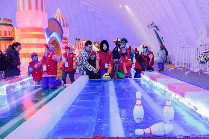 在那里,小记者们不仅听主题乐园的工作人员科普关于冰雪建筑的知识,还乘着迷你火车来一次冰天雪地小火车之旅。观赏结束后,更是玩遍了主题乐园里的冰滑梯、雪圈、冰上碰碰车、冰上保龄球、冰上自行车、能量单车等冰上娱乐项目。