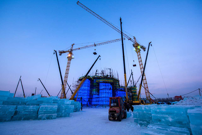 在天气因素的制约下,冰雪大世界从2016年12月5日采冰到2016年12月21日试营业开园,只有短短的17天施工工期,却将梦想中的童话王国变成了现实。在这座国际上最大的冰雪主题乐园里,北方冰城的人们创造了一项又一项的世界奇迹!