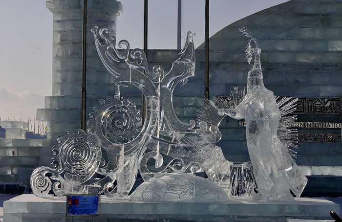 第五届中国哈尔滨国际组合冰雕比赛一等奖:蒙古达尔汗队《母亲》