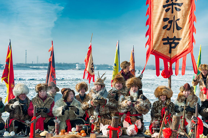 2016年12月5日采冰仪式上,采冰人在零下23度的气温下,依然神圣庄严的完成着仪式的每个环节与步骤,原生态的民俗文化,无不彰显着北方人豪迈与热情,也处处体现着北方人特有的坚韧不拔的精神与品质。