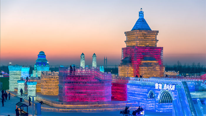 随着哈尔滨冰雪大世界的正式开园,所有员工都准备好了竭诚为游客提供最优质的服务,诚邀您一起来到冰雪的童话王国,欣赏壮丽的冰雪景观、体验激情的冰雪游乐、观看叹为观止的冰雪演艺,哈尔滨冰雪大世界内所有的娱乐项目、演出节目全部一票到底!让我们一起与冰雪为舞,与快乐通行!