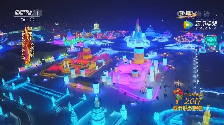 2017年中央电视台春节联欢晚会首次设立上海、广西桂林、四川凉山、黑龙江哈尔滨四个分会场,哈尔滨冰雪大世界作为春晚历史上纬度最高、温度最低的分会场,在极寒的环境中,全面的体现了冰雪的特征,完全的展现了东北的冰雪风貌与冰雪文化,并最终完美的实现了艺术的表现!