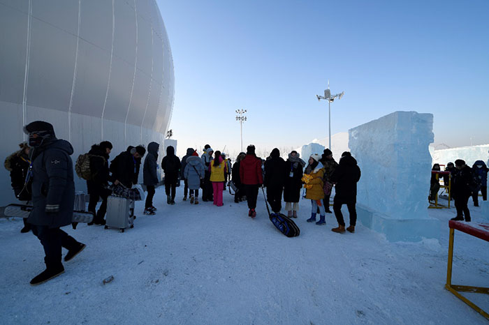 12月28日早上9点,哈尔滨冰雪大世界园区内已人潮涌动,他们就是参加2017首届"高校冰灯冰雕艺术创新设计大赛"的选手们。