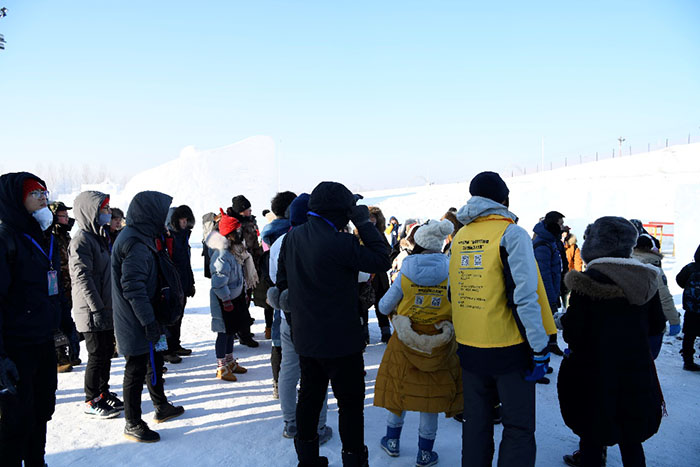 比赛在哈尔滨冰雪大世界6D球幕环球影院北侧区域举行,比赛现场一座座晶莹剔透的冰材静静伫立,参赛选手已早早就位,摩拳擦掌。参赛小组每组人数在3-5人,每队都有一名指导教师。