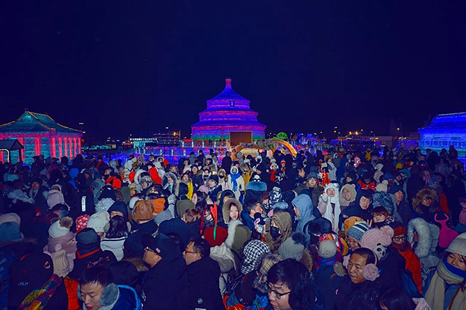 或者发送在冰雪大世界游园的美丽照片发送朋友圈,