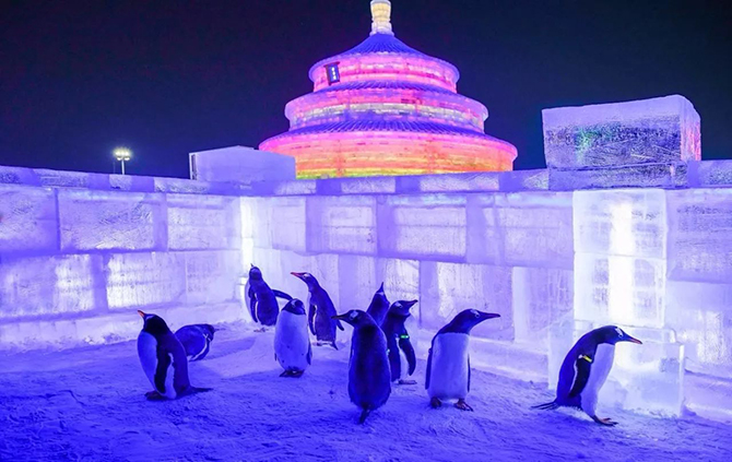 哈尔滨极地馆的南极企鹅曼波带着极地小分队来哈尔滨冰雪大世界“串门”,呆萌可爱的南极企鹅、高傲的北极狼、慵懒的北极狐。让游客在欣赏到恢弘的冰景之际,还能感受到神秘的极地氛围!