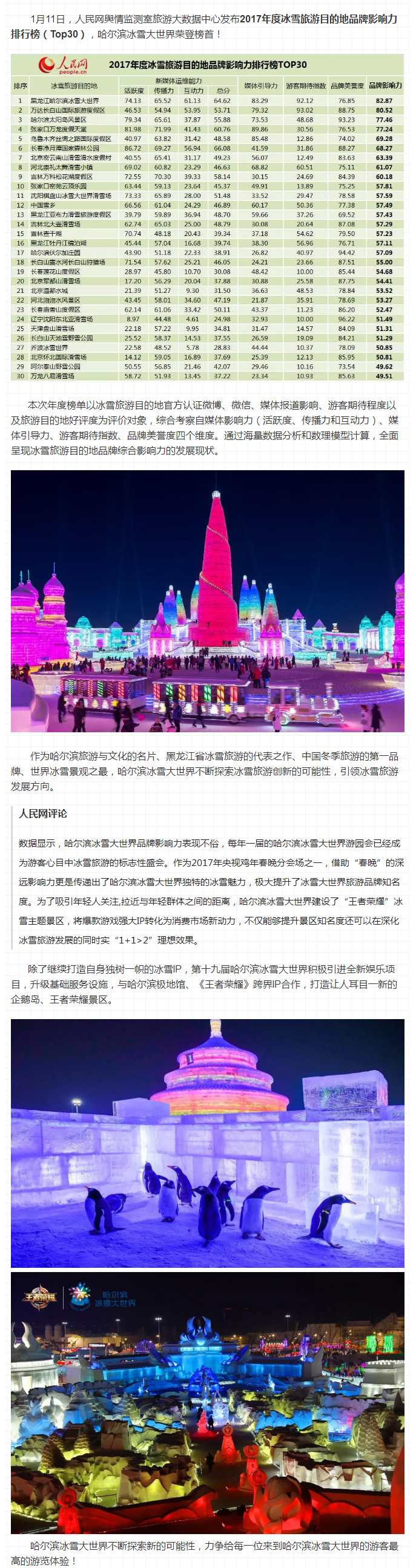 人民网发布2017年度品牌影响力排行榜,冰雪大世界荣登榜首!