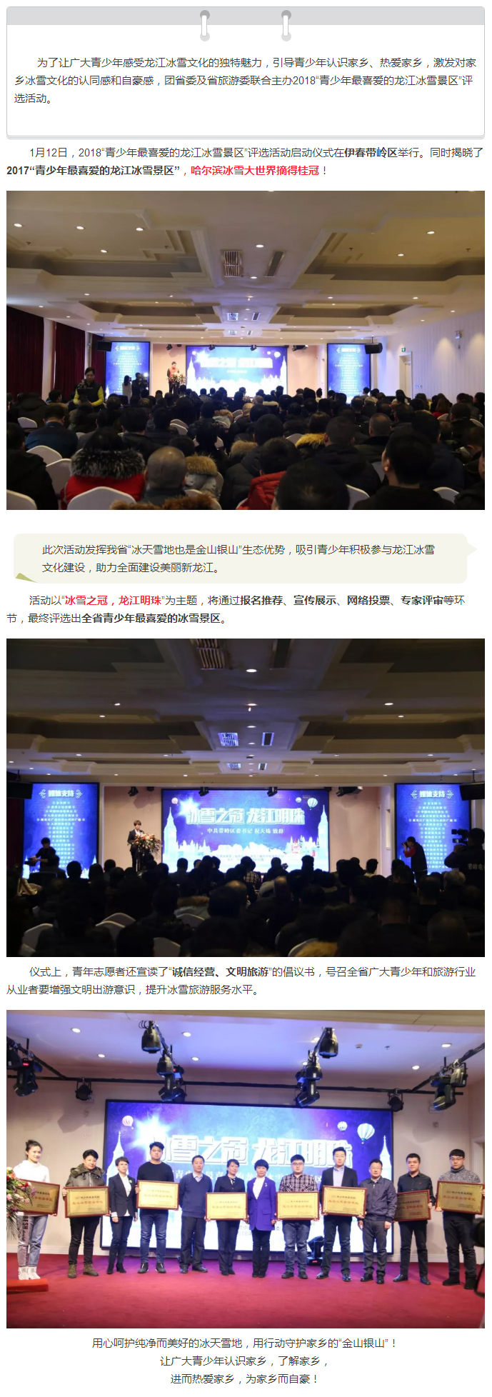 哈尔滨冰雪大世界荣获2017“青少年最喜爱的龙江冰雪景区”