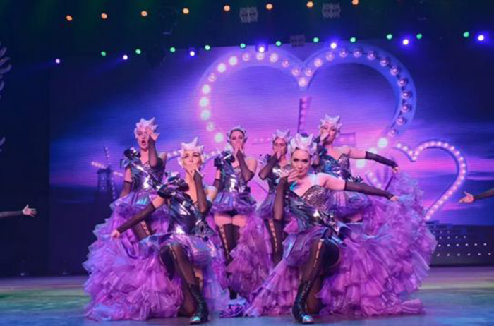 全外籍演员阵容的哈冰秀国际舞蹈演员穿着华丽的服饰表演,美感十足。
