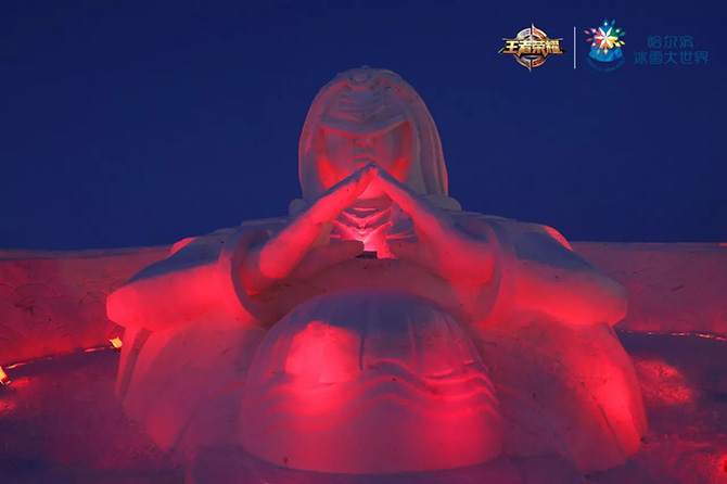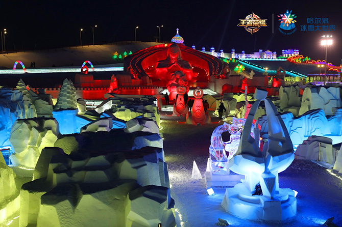今年哈尔滨冰雪大世界跨界打造的王者荣耀景区吸引了无数游客造访