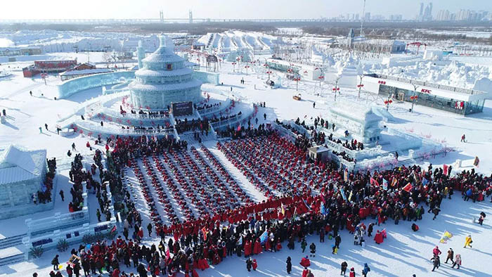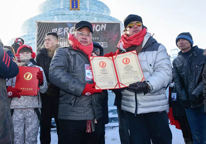 一项新的世界纪录在哈尔滨冰雪大世界诞生了,