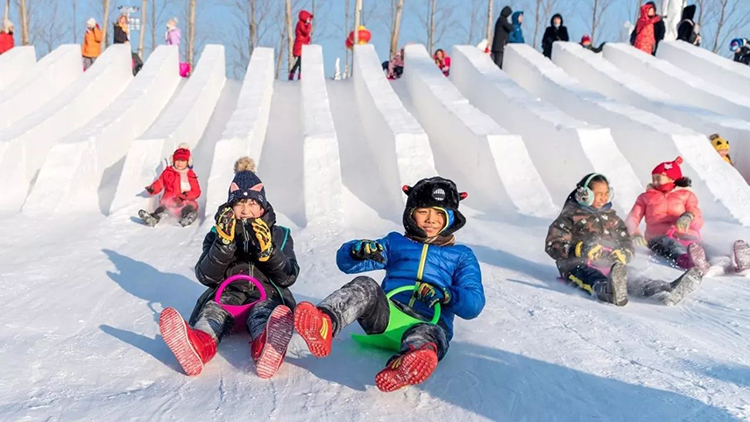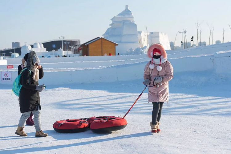 为了让游客近距离感受冰雪文化,除了欣赏美丽的冰景,哈尔滨冰雪大世界还为游客准备了多达三十余种的冰雪体验项目,让游客有更加多样的体验。