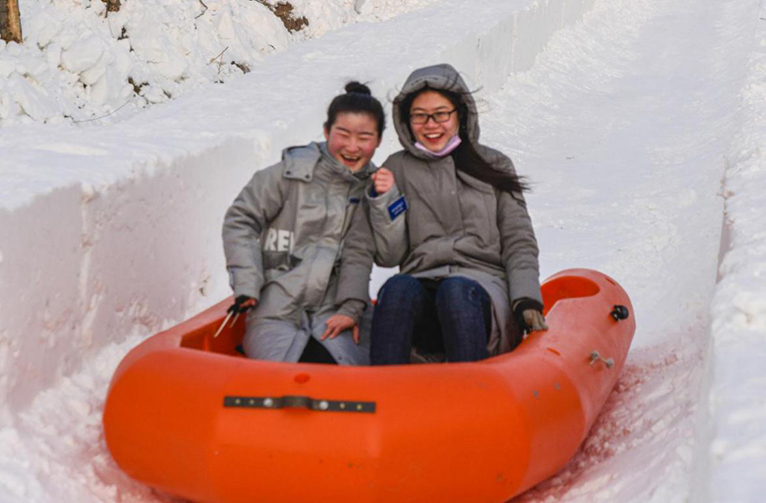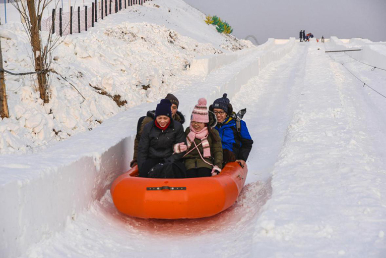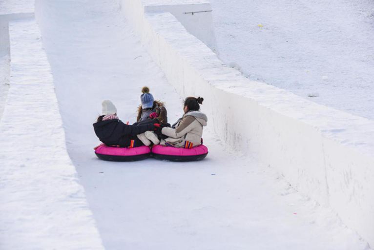 为了满足不同组合的游客需求,哈尔滨冰雪大世界的雪圈种类多样,自己的单人滑、两个人情侣滑、三个人组队滑、四个人组团滑,任您选择。