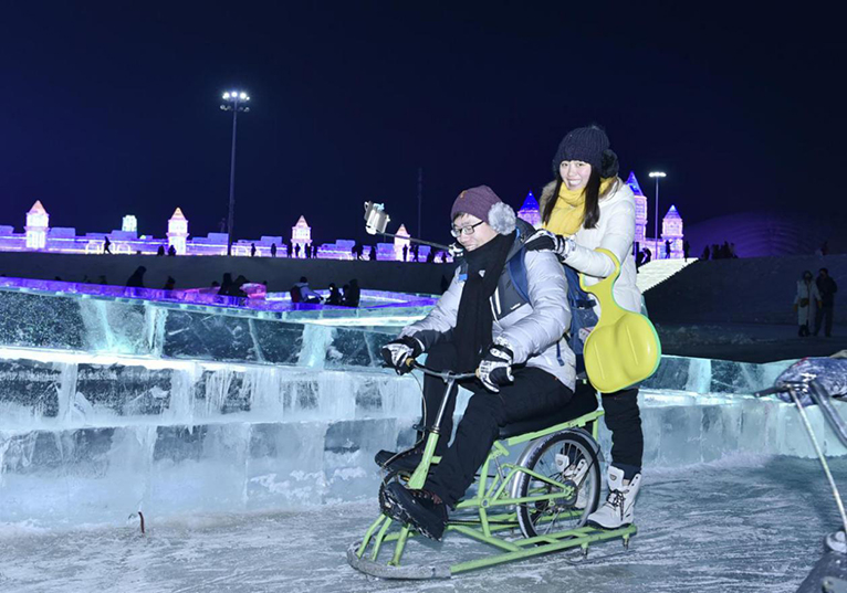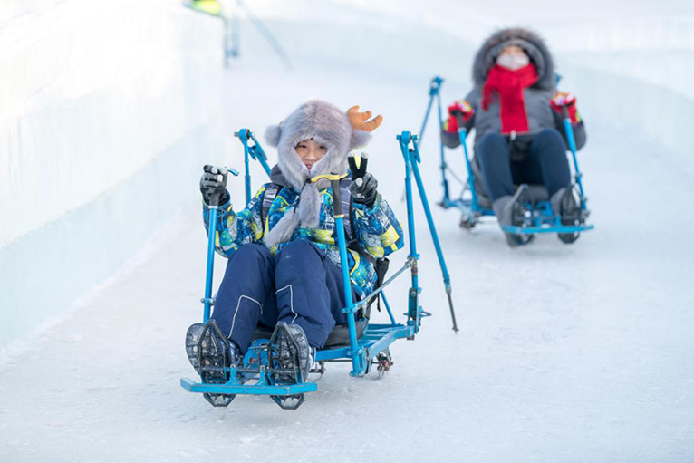 哈尔滨冰雪大世界内的娱乐项目多达三十余种,分布于园内的各个区域,大人、孩子都能找到合适的道具尽情玩耍。各区域不仅有哈尔滨冰雪大世界的专职人员提供现场服务,您还可以亲眼目睹“高级玩家”们怎么秀出驰骋冰雪的风采,玩冰戏雪的花样系列美图即刻奉上,先来一睹为快吧!