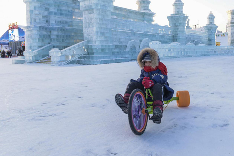 3.儿童冰上自行车,不用爸妈陪同,宝贝们自己就可以随意嗨玩!