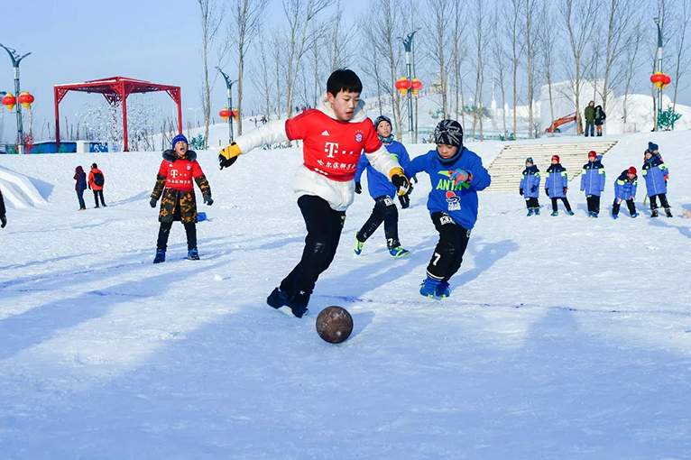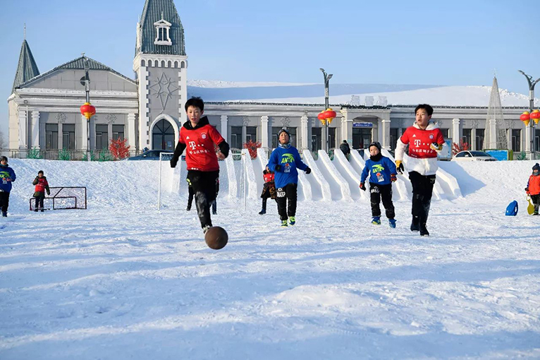 此前,在哈尔滨冰雪大世界还展开了一场别开生面的雪地足球表演赛。对阵的双方分别为香坊区成高子镇香和小学90余名留守儿童、农民工子女、希望工程足球队小队员们和阿城机电小学足球队。