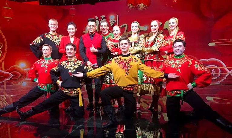今日,哈尔滨冰雪大世界带领俄罗斯国宝级舞蹈团“小白桦艺术团“参加央视三套春晚倒计时特别直播“东南西北贺新春”。