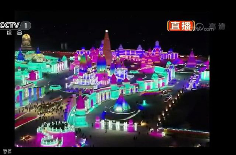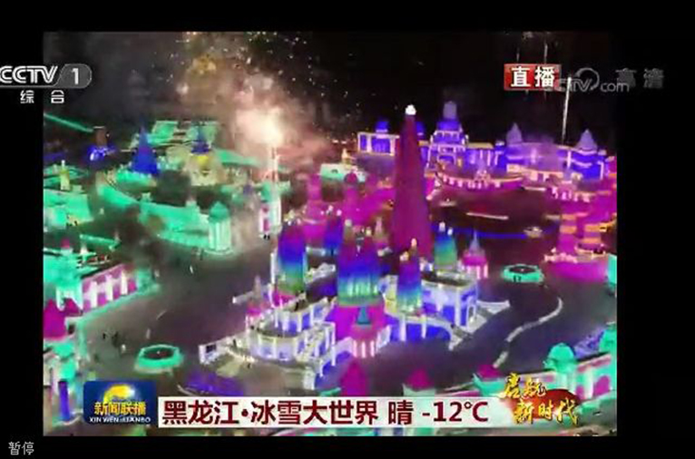 在春节联欢晚会即将开始之前,哈尔滨冰雪大世界的画面再一次出现。在举国欢庆的时刻,哈尔滨冰雪大世界用自己的方式向全国观众送去新春最浓厚的祝福!