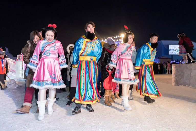 来自世界各地的游客除了欣赏东北地方特色风情外,还可以在冰天雪地的室外与美丽的、帅气的领舞们一起嗨舞,跳到浑身火热!