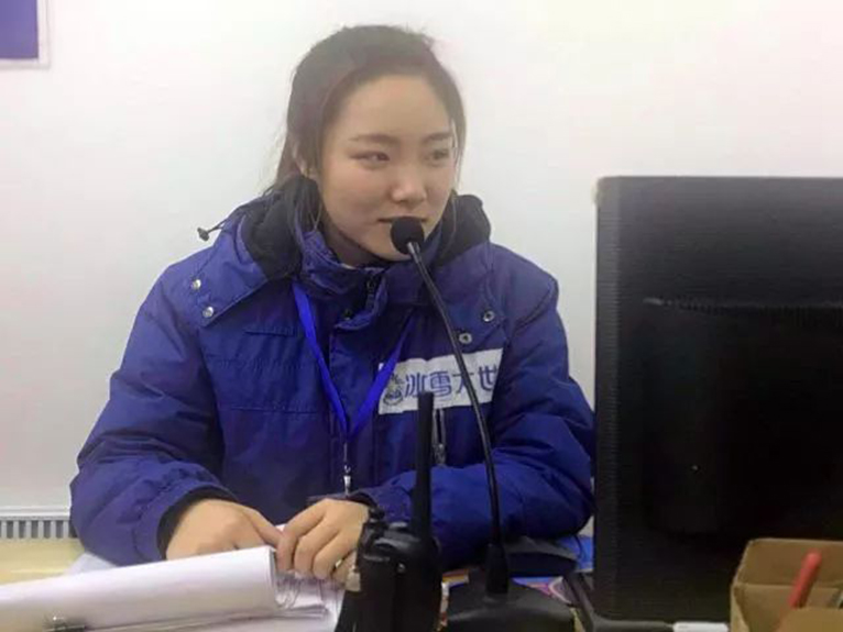 “四朵金花”中年纪最小的高兵是大三学生,寒假来这里做一名志愿者。发挥播音主持专业的特长,景区内每天都会响起她甜美动人的声音,为游客播读温馨提示。这一天,一对外国夫妇的两个孩子走失了,她马上反复在全园播送了寻人启事。