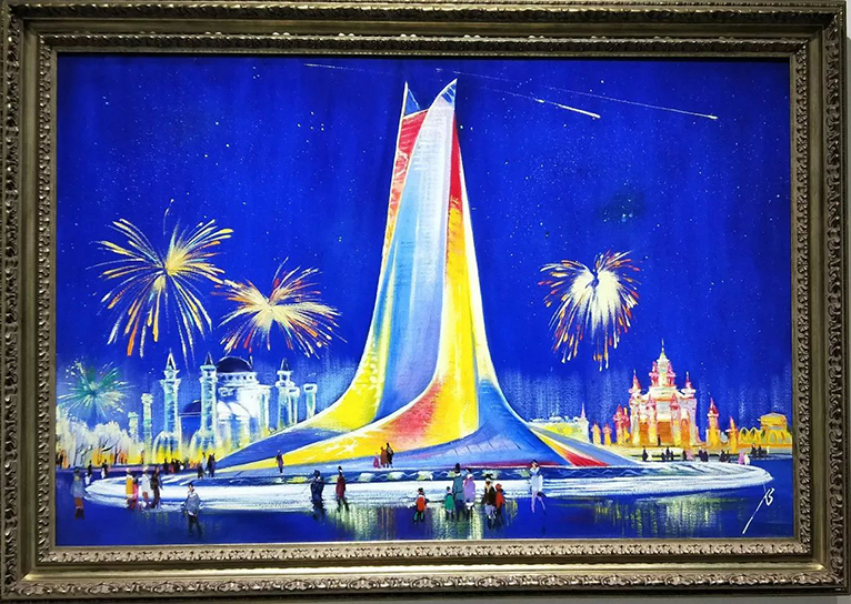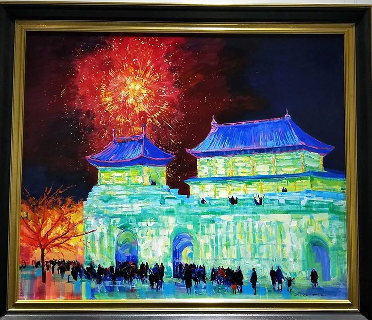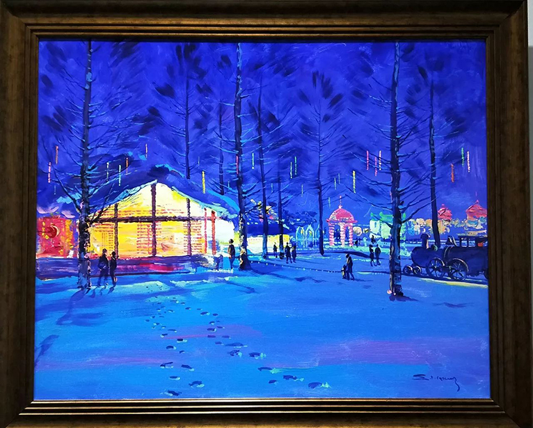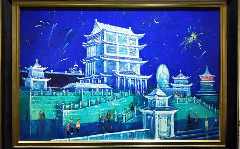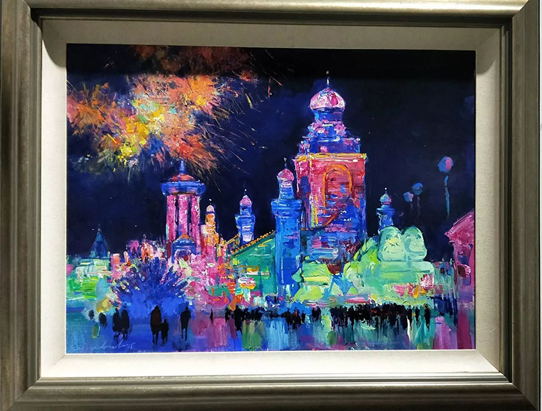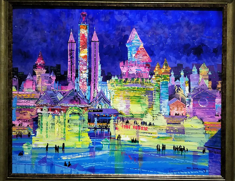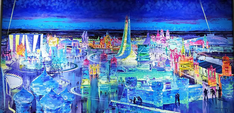 在2016年第十七届哈尔滨冰雪大世界期间,我们力邀俄罗斯数十位著名功勋画家,以历届精美冰雕、雪雕及人文景观为题材,精心创作了油画作品,这些作品中有雄伟的冰宫、寺庙、广场以及成百上千的绚烂烟花、当欣赏凝固在画布上的冰与雪、光与影时,你会折服于艺术家独特的视角和表演手法,也会惊叹于冰雪艺术和油画艺术的相互映衬。