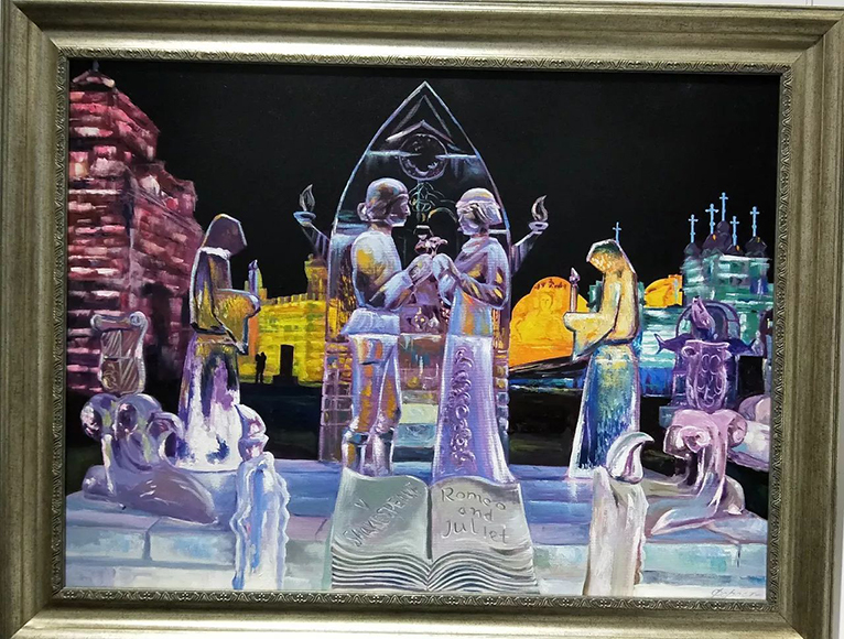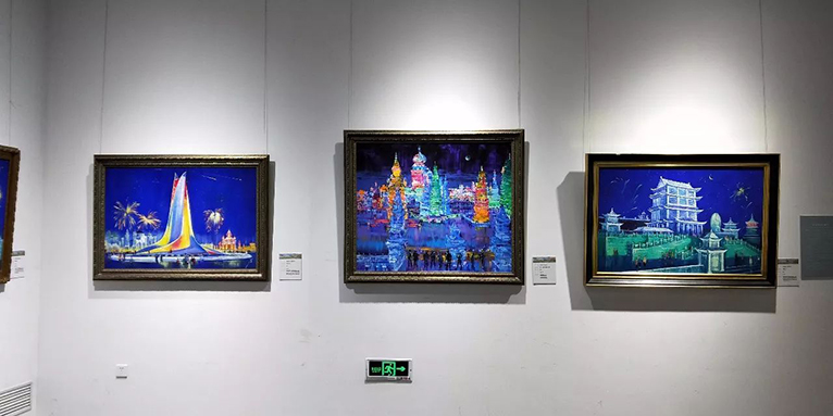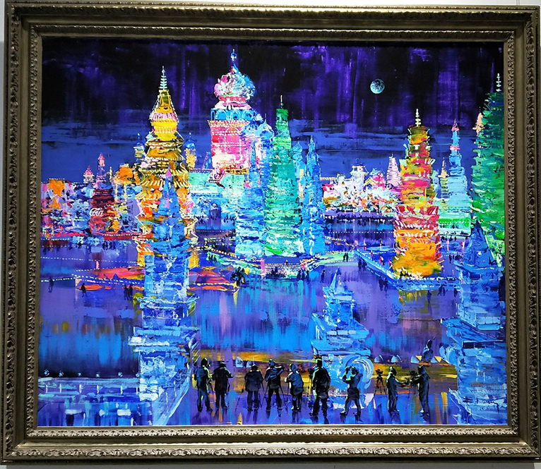 其中有12幅油画作品描绘了哈尔滨冰雪大世界的美丽景观
