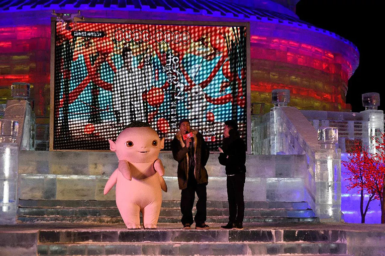 1月5日,在哈尔滨冰雪大世界开园仪式的当天,“贾天师”杨祐宁携“小妖王”胡巴空降哈尔滨冰雪大世界助力,近距离地与粉丝互动。