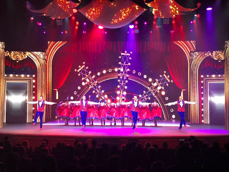 来自乌克兰、白俄罗斯的舞蹈演员穿着华丽的服饰,演绎性感巴黎女郎,艺术感和美感十足;俄罗斯演员通过冰上芭蕾展现北国冰雪世界魅力;来自匈牙利的优秀花式篮球秀演员们将炫惊险球技,他们倾情演绎,时刻与台下游客保持互动,采用多场景、幻变式、快节奏的表现手法,结合梦幻4D科技技术,配以宏大的舞美,展现浪漫冰雪世界中的繁华景象,带给游客极致的视觉享受,是一场冰情四射的冬季嘉年华。