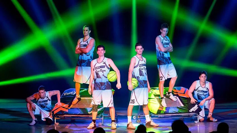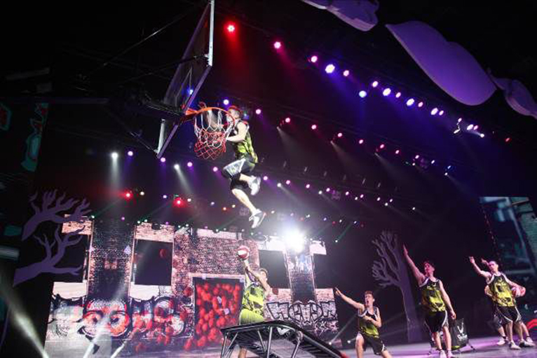 Face Team Basketball: 以动感篮球为主题,有6人组成的球技表演,包括令人高昂的灌篮、一系列充满喜剧元素的霹雳舞动作,还有与观众互动的幽默表演!