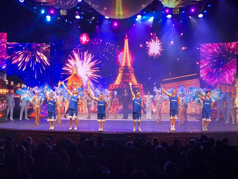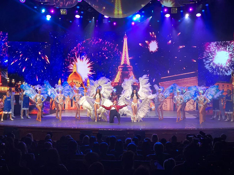 梦幻巴黎演出采用先进的音响及视觉技术,将巴黎铁塔、凯旋门、罗浮宫及巴黎圣母院等名胜呈现观众眼前,感受一段身临其景的巴黎之旅。38人的国际级表演团队,分别来自加拿大、巴西、英国、白俄罗斯、俄罗斯、匈牙利、乌克兰。演出内容包括绝技演员、魔术师、世界级滑冰冠军、国际名模及获奖无数的舞者与表演者,演出结合幻象、舞蹈、杂技与喜剧等多种形式,为不同年龄的观众带来65分钟真正巴黎式风格精彩演出,绝无冷场的国际性精彩表演!