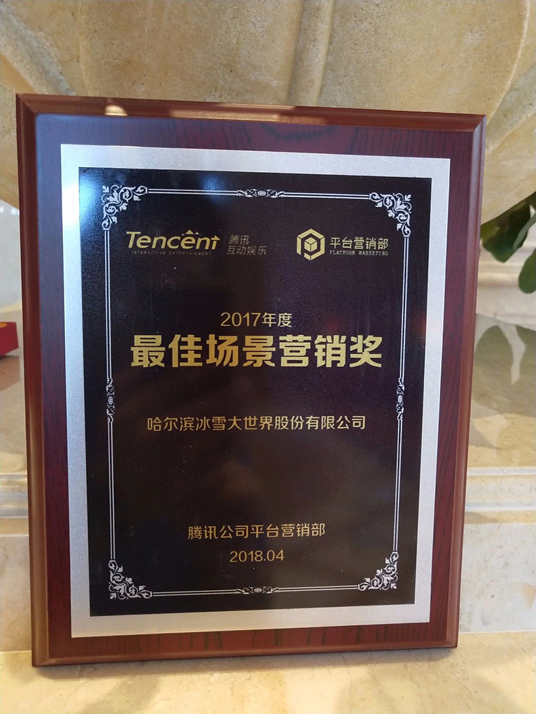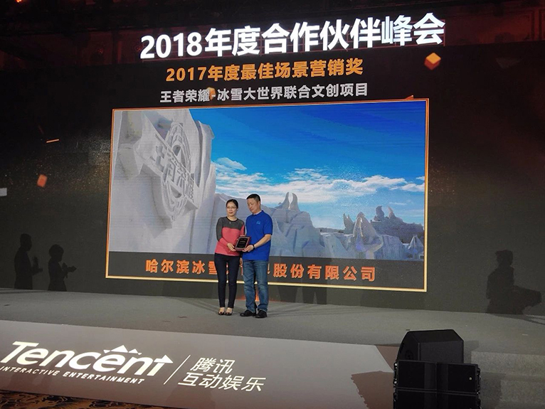由腾讯游戏副总裁高莉女士亲自将此项殊荣颁发给哈尔滨冰雪大世界副总经理王增钰先生!