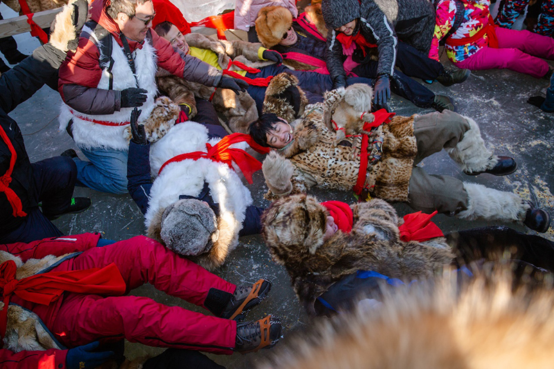 (冰汉子们滚冰祈福)