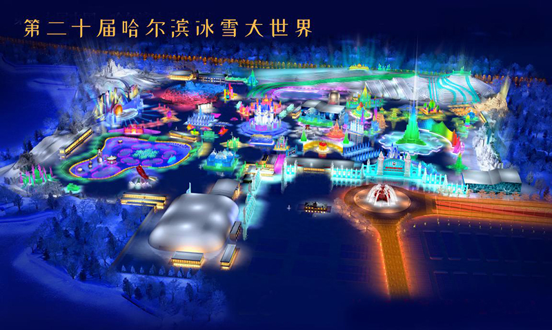(第二十届哈尔滨冰雪大世界效果总览图)