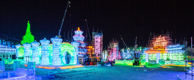 正式开园前,先观看一组建设“谍照”,感受一下冰雪乐园的打造过程吧: