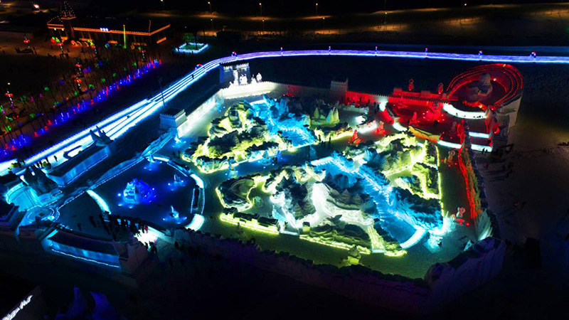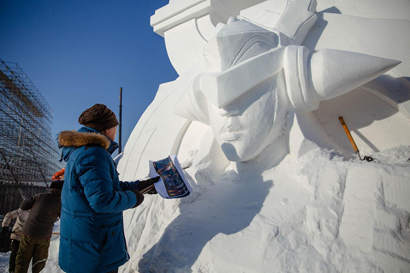 说起雪雕,还真是只有在北方的召唤师们能体验的活动。将冬天里厚厚的积雪当成塑形材料,再一点点打造出纯白的雕塑形象,从构建框架、切割雕刻到最后休整,无不体现雪雕艺术家的匠人精神。以雪作雕塑原材料,更让它成为冬日限定的浪漫艺术。雪雕在东北已经成为了一项文化底蕴深厚的艺术行为,尤其是冰城哈尔滨,而太阳岛上的冰雪大世界更是雪雕塑景的集大成者。妲己宝宝偷偷调查了冰雪大世界,已经有19届的历史了!丝路、奥运、童话世界,冰雪大世界每年都会根据特定的主题,为玩家们打造一个神奇的冰雪世界。早在2017年的时候,冰雪大世界日均入园人数就已经登上国内主题公园排行榜三甲了!就在上一个冬天,《王者荣耀》与哈尔滨冰雪大世界达成合作,打造了一座总面积达1万5千平方米、史上规模最大的冰雪文化景区,让无数召唤师沉浸其中。