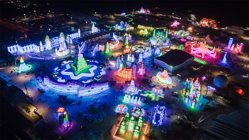 冰肌雪骨鲜活而灵动,冰魄雪魂晶莹而动人,每一片雪、每一块冰仿若都带着情绪,向游客传达着北国独特的风韵。这就是哈尔滨冰雪大世界,一座完全由冰雪筑就的庞大乐园,上百个景观群簇拥着冰雪精魂,勾勒出了最唯美的线条。