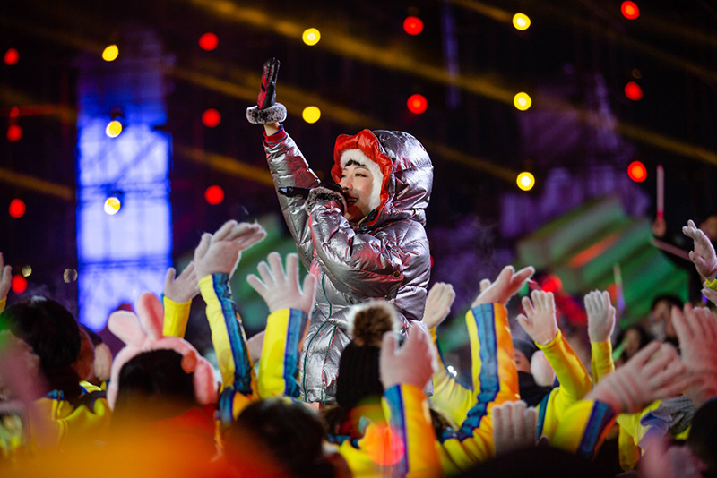 吴莫愁的动人嗓音在冰天雪地中,营造出了热火朝天的气氛,寒冷的北方也如此热情动人!