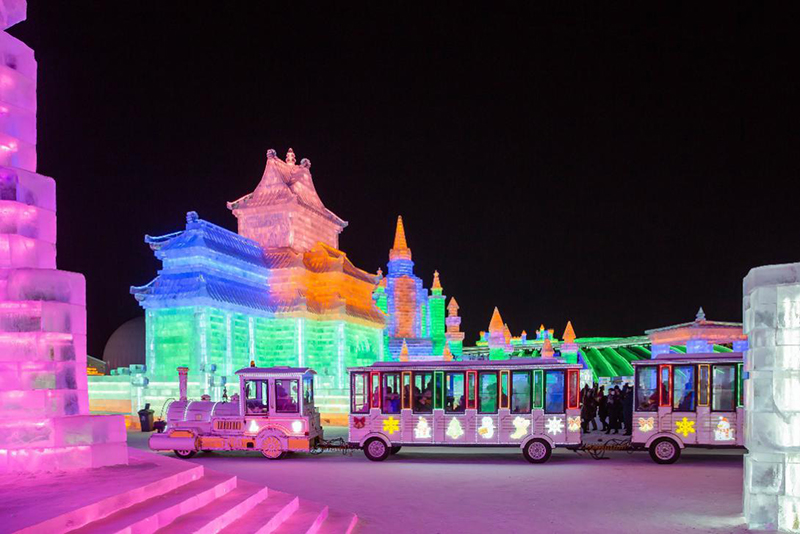 夜幕已经降临,白日里莹白的乐园瞬间换上华裳,上百个冰雪景观群闪耀着炫目灯火,多了几分烟尘荡气。复古的曲风、高亢的旋律,带着异域风情,又充满着潇洒自由的味道,与这满园美景交相呼,洋溢奇妙滋味。