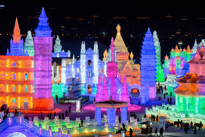 冰雪大世界已经连续多年成为国际冰雕赛事的举办地,游客们除了能欣赏到高大壮观的冰景外,更能近距离观赏细腻逼真的冰雕艺术作品。丰富、多元的冰景和高超的冰雕技艺给全世界的游客带来了快乐和美的享受。