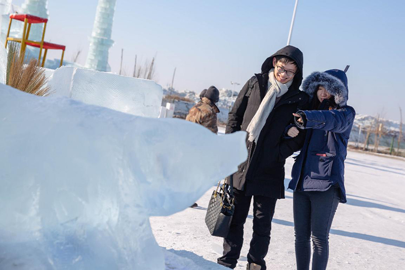 目前,赛程过半,各国艺术家为作品做集中的整体呈现。每座冰雕在阳光下晶莹剔透、流光溢彩,冰雪大世界园区内的游客纷纷抓拍下精彩的创作瞬间。很多游客之前从没有亲身目睹冰雕艺术作品诞生的过程,对他们来说,这是一种崭新的难忘体验,对小朋友们来讲,更是一次难得的艺术熏陶。