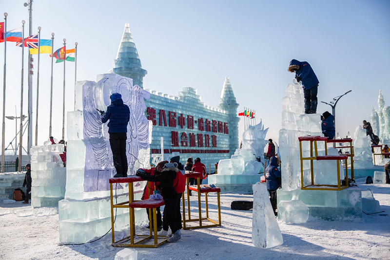每年冬天,哈尔滨以众多国际顶尖冰雪雕刻赛事聚焦世界的目光。当前正在进行的,是第八届中国•哈尔滨国际组合冰雕比赛。本届比赛有来自西班牙、意大利、俄罗斯、乌克兰、英国、印度、波兰、埃及、蒙古、墨西哥、加拿大和中国等12个国家16支代表队的64名队员参赛。